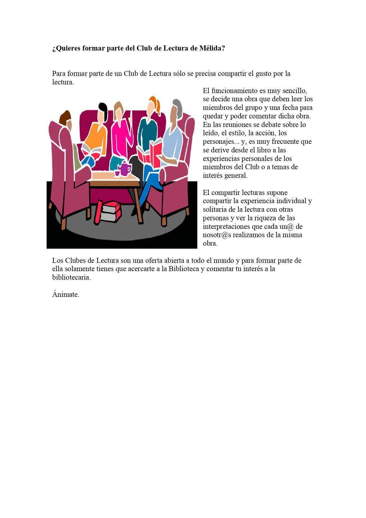 ¿Quieres formar parte del Club de Lectura de Mélida?